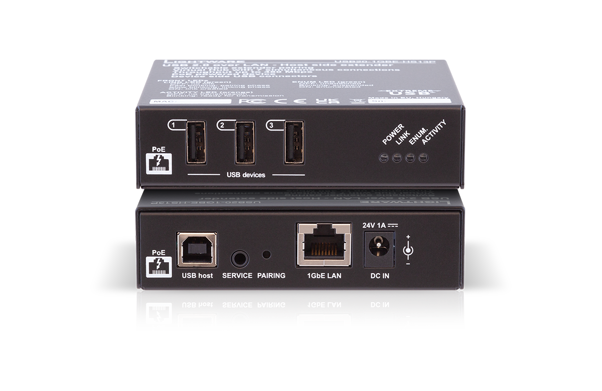 Experience the future of USB connectivity with our latest USB 2.0 extender. Effortlessly connect devices and hosts over distances of up to 100 meters, all while enjoying the convenience of PoE+ power – available now at Lightware.