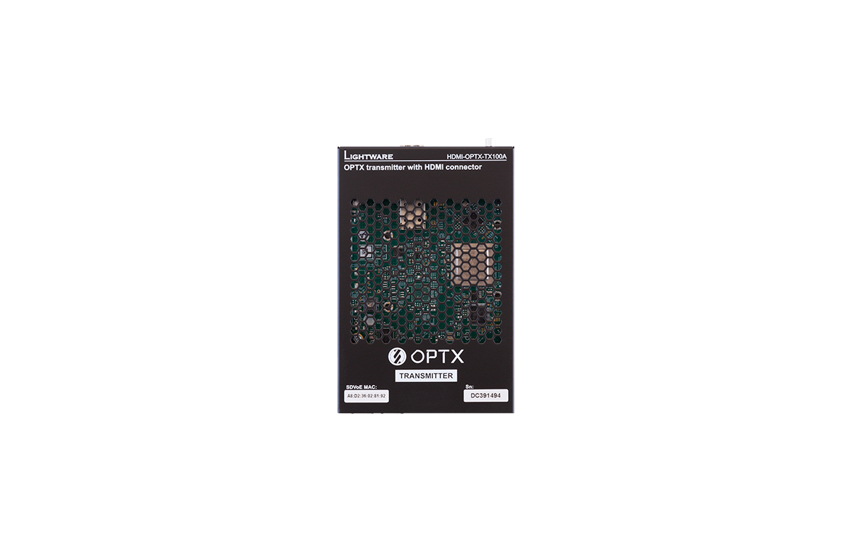 The HDMI-OPTX-TX100A and HDMI-OPTX-RX100A transmitter and receiver devices are fiber extenders based on SDVoE technology and allow users to extend HDMI 2.0 compliant video, audio and control signals from a single source to a single destination through a fiber optical link.