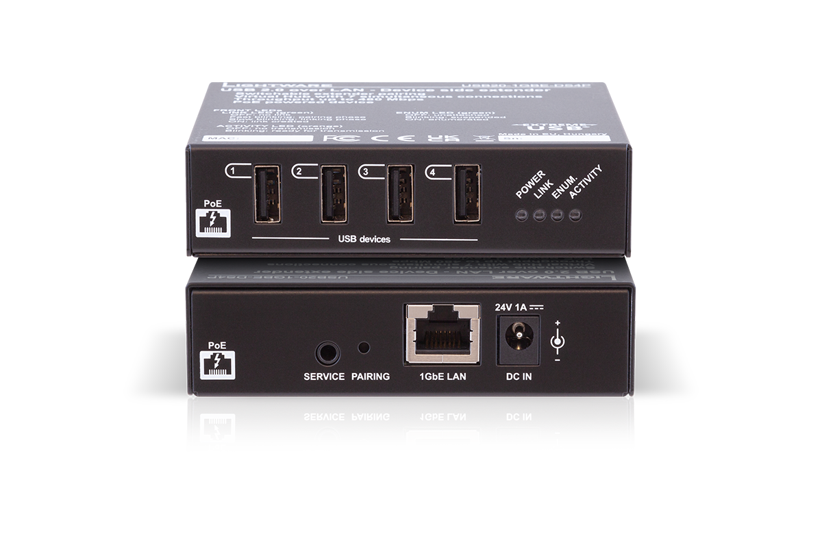 Experience the future of USB connectivity with our latest USB 2.0 extender. Effortlessly connect devices and hosts over distances of up to 100 meters, all while enjoying the convenience of PoE+ power – available now at Lightware.
